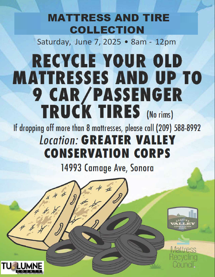 For a fee, tires may be taken to Cal Sierra Transfer Station or Groveland Transfer Station.